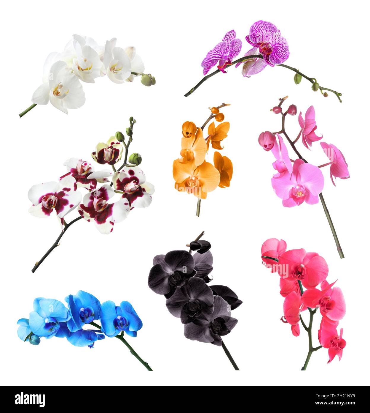 Set With Different Color Orchid Flowers On White Background Stock Photo Alamy